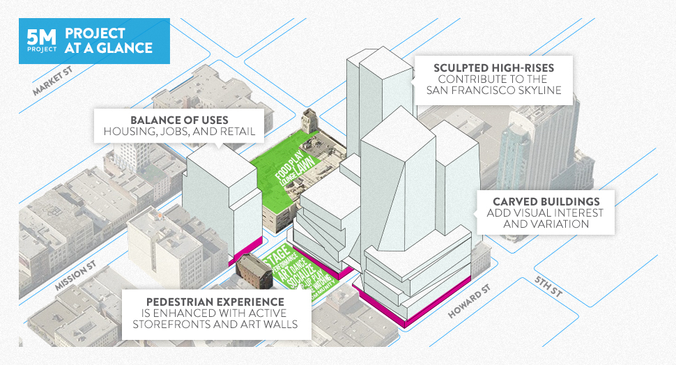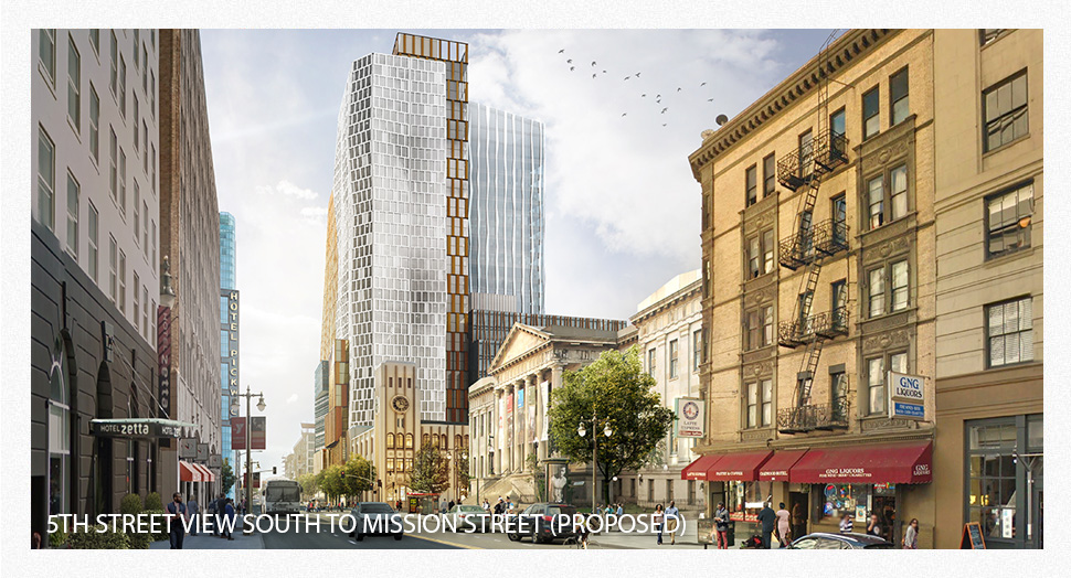 The San Francisco Chronicle has made its home at 5th and Mission streets for nine decades. Since 1924, the site has marked a transition from downtown to Mid-Market and SoMa’s eclectic mix of uses, which continues today at 5M.